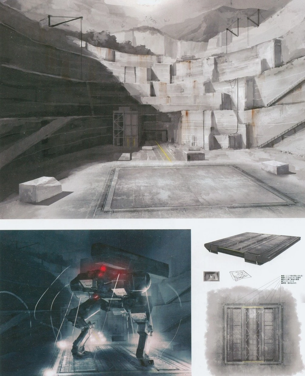La mina se suponía que al parecer para extraer oro, aunque esto era una fachada para el montaje del arma IA Peace Walker. Contenía hangares para las versiones producidas en masa del prototipo de AI armas (Chrysalis, Cocoon, y Pupa) con equipos de computación usados para bajar IA pod s en los prototipos de comunicación diferentes producidos, un comando después, el hangar de ensamblaje de la Paz Walker, y una prisión. La prisión también contenía una sala eléctrica utiliza para controlar las barras de choque que podrían ser utilizados para torturar a la gente para obtener información. Una puerta de escape se encuentra también cerca del ascensor de carga en caso de emergencias.