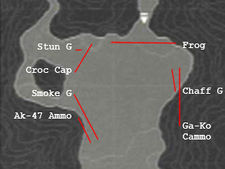 Se dice que en esta zona los Gaviales Indios son más duros, cosa que es verdad, ya que cuando Snake bucea, un ataque de los cocodrilos supone la muerte.