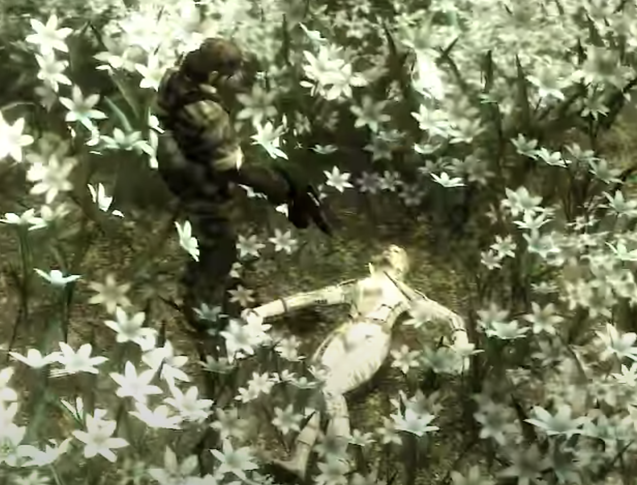 Snake and EVA then made their way to Rokovoj Bereg to board a WIG that EVA had stashed away as an escape vehicle. With enemy soldiers still on their tail, EVA was severely injured in a motorcycle crash, needing to be escorted through Zaozyorje by Snake while maneuvering around a search team. Upon their arrival to the lake, however, The Boss was waiting, and she confronted Snake in a field of white flowers. She reminded him of his duty as a soldier, prior to engaging him in a final duel. To ensure that Snake would carry out his mission, The Boss radioed Russian fighters, who were only ten minutes away from their position, to begin bombing Rokovoj Bereg. She gave Snake some parting words, which would come to greatly shape his worldview and haunt him for the rest of his life: