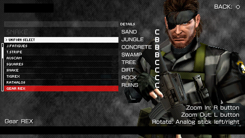 - ―Gear REX description in Metal Gear Solid: Peace Walker