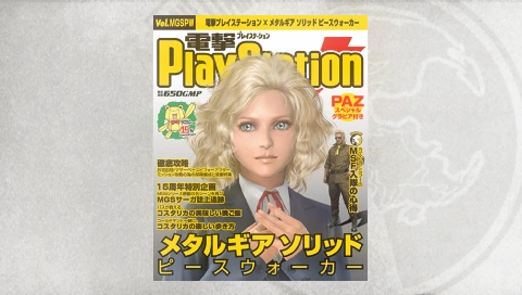 The Solid, Liquid, Solidus, and Super magazines in Metal Gear Solid: Peace Walker were originally Weekly Famitsu, Dengeki PlayStation, Dengeki Games, and Weekly Shōnen Magazine, respectively, in the game's Japanese release. They were added in by Hideo Kojima as a joke towards product placement,[13] though these were changed for the overseas versions, presumably due to copyright issues. The inclusion of product placement items, however, received some degree of controversy, especially regarding the inclusion of the aforementioned magazines, specifically Famitsu, with some going as far as to list its inclusion and the perfect review score given by the magazine as a conflict of interest.[14][15][16] Their menu name was given as simply "Hobby magazine" with little distinction between either of the four. Similarly, their descriptions in the Japanese version was no different from that of the ordinary magazine, while in the overseas release, the hobby magazines were given their own uniform description. The respective magazines required the completion of various Extra Ops of either Fulton Recovery (as was the case for Solid/Weekly Famitsu, Liquid/Dengeki PlayStation/Famitsu Xbox 360, and Super/Weekly Shōnen Magazine) or Target Demolition (as was the case for Solidus/Dengeki Games), the specific missions being 010: Fulton Recovery for Solid/Weekly Famitsu, 011: Fulton Recovery for Liquid/Dengeki PlayStation/Famitsu Xbox 360, 018: Target Demolition for Solidus/Dengeki Games, and 013: Fulton Recovery for Super/Weekly Shōnen Magazine, with the rewards being listed as "Magazine Layout" with the name of each magazine name included for the respective magazine in the overseas versions. Even though all four magazines in the Japanese version are based on real life magazines, the covers themselves are completely fictional, with Weekly Famitsu featuring then-public relations member for Konami Sayaka Yamamoto (who also has a cameo in the game as a recruitable Mother Base soldier), the Dengeki PlayStation cover features Paz on the cover, the Dengeki Games cover features Manaka Takane, a character from the dating sim game franchise LovePlus (which was also made by Konami), and the cover for Weekly Shōnen Magazine features Japanese model/actress Sari Koboyashi.