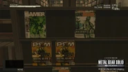 In addition to the Sabra magazines, other magazines, primarily gaming magazines that have Metal Gear Solid as the front cover issue, are seen within Groznyj Grad's library on a magazine rack. The magazines found vary between versions, including Electronic Gaming Monthly #178, PSM (similar to issue 74), GamePro (similar to issue 192), Game Informer, and Gamer in the North American versions, while the Japanese versions contain Famitsu, Sunday, and Magazine. In addition, there's the Metal Gear Solid comic and a Playboy magazine in Graniny Gorki's Western portion of its basement, and a fictional The Revolt of Tirn Aill magazine illustrated by Hiro Usuda.