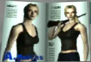 In Metal Gear Solid: The Twin Snakes, the Book's cover features Ellia, while the centerfold features Alexandra "Alex" Roivas. Both are playable characters in Eternal Darkness: Sanity's Requiem, with the latter being the main protagonist of the game. The book is unique because it doesn't feature a traditional female model. Eternal Darkness's developer was Silicon Knights, who also developed The Twin Snakes. In the latter, Alex can be seen holding the Winchester Model 1300 Defender shotgun on the centerfold's right page, which is one of the more powerful weapons in her arsenal in the same game. In Hal Emmerich's lab, there are various magazines spread across the floor and on the shelf, including a Metal Gear Solid comic, a magazine with the Eternal Darkness logo on it, and one detailing art from Alaska.