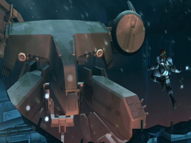 Snake's REX fights against Liquid's RAY at Shadow Moses.