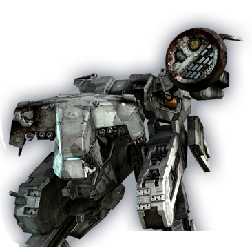 A battle-damaged Metal Gear REX, piloted by Solid Snake in 2014.