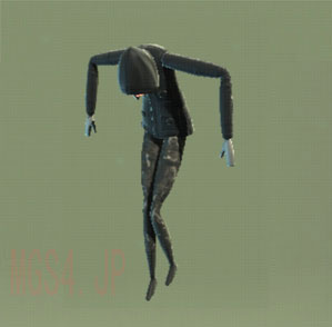 A marionette fashioned after FOXHOUND unit member Psycho Mantis. Creator and age unknown. Has the ability to release ghosts. If a ghost hits a person with active nanomachines, it will kill them instantly, although the player can shake their remote to torture the soldier and make him ragdoll in the air with limbs flailing about. However, items will not be shaken out and they will die whether or not they were tortured. The main reason why Snake seems to utilize it in this manner is because he isn't a skilled Psychokinesist.[2] When activated, it will say "Blackout!" in a high-pitched voice, a reference to Psycho Mantis' line from Metal Gear Solid.