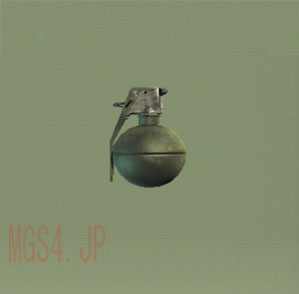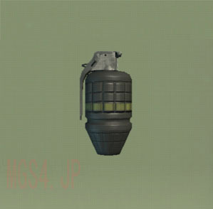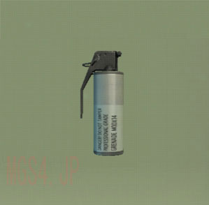 A non-lethal, combat support smoke grenade. Releases a green smoke that, when inhaled, induces the urge to scream and run from place to place. Affected persons will ignore Snake, but will fall unconscious after a while.