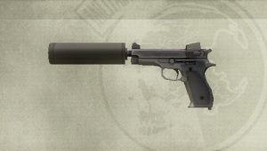 The Mk22 was later utilized by Big Boss's mercenary group, the Militaires Sans Frontières, and acted as their standardized handgun when they were recruited to repel an invading mercenary force in Costa Rica.[3] It was later upgraded to include a variety of suppressors, each one more durable than the previous. The weapon would eventually be superseded with MSF by the WU Silent Pistol by late 1974 through the group's destruction in 1975.