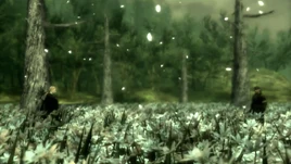 Japanese visions of Paradise are often depicted as a flowing field of wild flowers, hence the symbolism. The white Grass lilies growing throughout this area works to The Boss' advantage as she remains well camouflaged throughout the battle due to her white Sneaking Suit. The flowers briefly change colors whenever Snake is hit during the battle, and completely turn to red after the Boss is killed. In Metal Gear Solid 3: Subsistence, this area, unlike all other areas in this version of the game, allows the player to use only the fixed camera angle setting. This ensures that the optical illusion, which often makes The Boss hard to spot, is not thrown off by different camera angles.