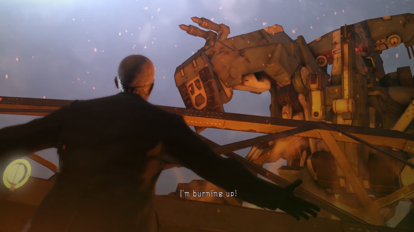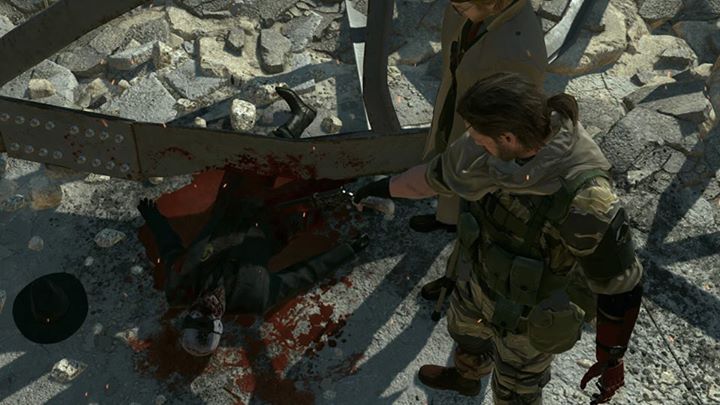 In the cutscene depicting Skull Face's demise, the player can choose whether to act on shooting Skull Face in revenge or waiting until the scene transitions to Miller aiding Venom Snake in shooting him. If the former, it will depict Venom Snake shooting him three times in the chest while flashing back to his appearance during the events of the Hospital Raid, hinting he shot him in revenge for sending Quiet and XOF to try and kill him at the hospital. On a similar note, just before Sahelanthropus flings scaffolding at Skull Face, the latter proceeds to say "Major... I'm burning up!"[15] This was a subtle reference to Space Oddity by David Bowie.