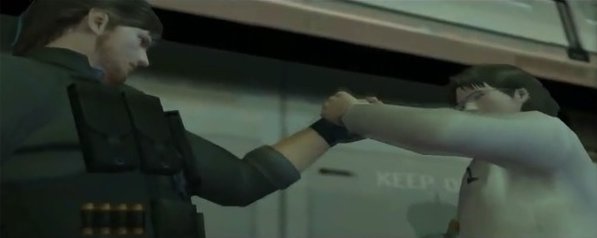 Otacon? I wanna ask you... Do you think love can bloom even on a battlefield? // Solid Snake: Yeah...I do. I think at any time, any place... people can fall in love with each other. - ^ Metal Gear Solid, Konami Computer Entertainment Japan (1998).