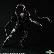 Solidus's suit was also armed with two prehensile tentacles or "Snake Arms" that could be used to grab or asphyxiate opponents, inject drugs such as Phenobarbital B into the system of an opponent, analyze the content of someone's brain for nanomachines and the information in them, and also had the ability to fire small missiles. The snake arms could be ejected to further increase the wearer's speed and agility. This technology was also utilized in the combat suit of Laughing Octopus of the Beauty and the Beast Unit.[19]