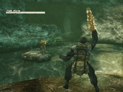 During Naked Snake's return to Tselinoyarsk in Operation Snake Eater, The Pain discovered his whereabouts at Bolshaya Past, as Snake duelled with GRU Major Ocelot. The Pain sent out his hornets to scout ahead, and they ended up attacking both men. While Ocelot escaped unharmed, thanks to his fancy gunplay, Snake accidentally fell into the crevice[4] and escaped being stung to death. After traversing the enormous, pitch-black cavern of Chyornaya Peschera, he encountered The Pain in a flooded chamber. The Pain was ultimately defeated by Snake, despite his extraordinary ability to control hornets, where upon his death, his microbomb (with which all of the Cobras were fitted) activated, destroying his corpse and his entire swarm. He was the first of the Cobras to fall in battle with Snake.