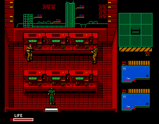 ^Metal Gear 2: Solid Snake (re-release), Kojima Productions (2006). Roy Campbell: Something is creating a jamming signal. Your radar won't work...Over and out. Campbell will note that something is causing jamming to the radar if the player contacts him while inside the shafts.