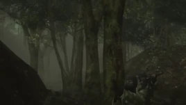 Shortly afterwards, Spetsnaz troops discovered the wreck of the motorcycle, and began searching the area, eventually placing snipers within the eastern portion of the area. Snake and EVA proceeded through the forest while avoiding the soldiers, eventually making their way to Rokovoj Bereg.